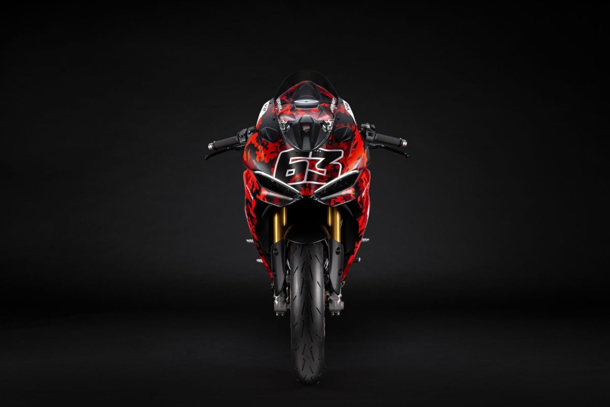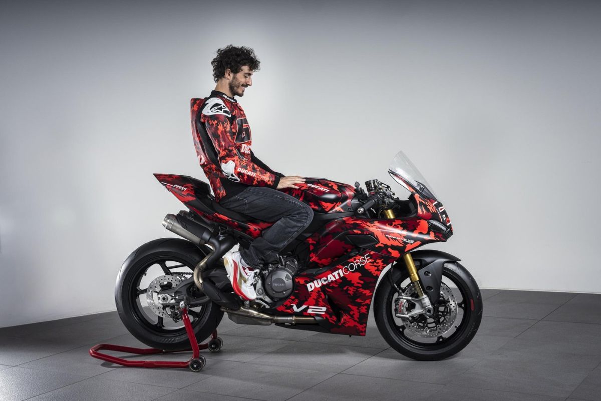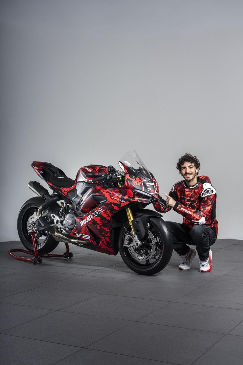 Teraz v exkluzívnej číslovanej edícii Pecco Bagnaia, ktorá je oslavou výkonov tohto jazdca v sedle Ducati. So suchou hmotnosťou ešte zníženou oproti verzii S vďaka kovaným kolesám na iba 175,5 kg u verzie S. Športový štýl dopĺňajú znížené riadidlá a tlmič riadenia Öhlins.